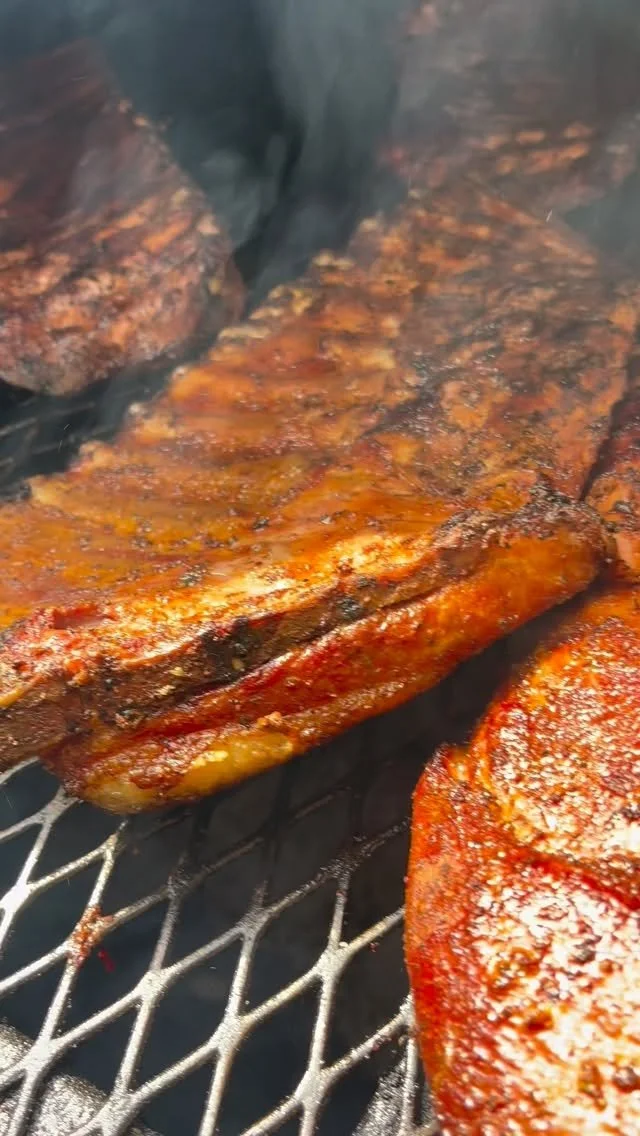 4-hour Smoked Pork Ribs with Double Mac N Cheese.