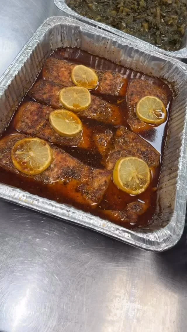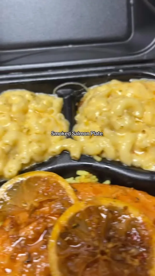 Smoked Sweet Glazed Salmon with Green Beans & Mac N’ Cheese.